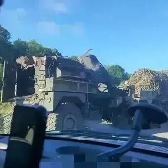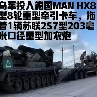 在最新视频中,乌军投入德国MAN HX81型8轮重型牵引卡车,拖着1辆苏联2S7型203毫米口径重型加农炮。这种火炮在现在的乌克兰已非常稀有。另外旁边有波兰制“蟹”式155毫米口径自行火炮开过。