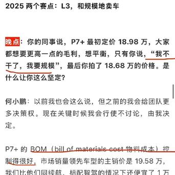 何小鹏之所以这么说,是因为他受到过这方面的教训,他跟媒体说了自己过去是如何被骗的,之前供应链不管也不懂,被一条线上的人骗得团团转,让供应链成本高效率低。如今花了大力气亲自管且弄懂了供应链,一气之下开除了10多名高管,才使得小鹏汽车造车的物料成本大幅度降低,从而敢于直接拍板把小鹏P7+这款车子的销售定价在了18.68万元,从而实现了销量的大飞跃,达到了“薄利多销,占领市场”的目的。